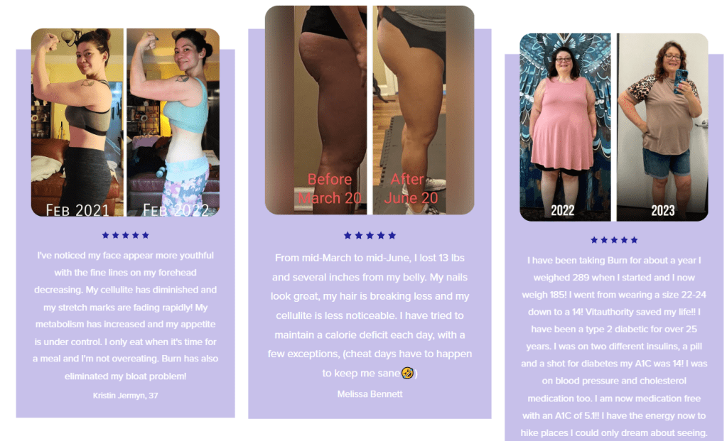 - Bloat reduction: Burn has helped eliminate persistent bloating issues.